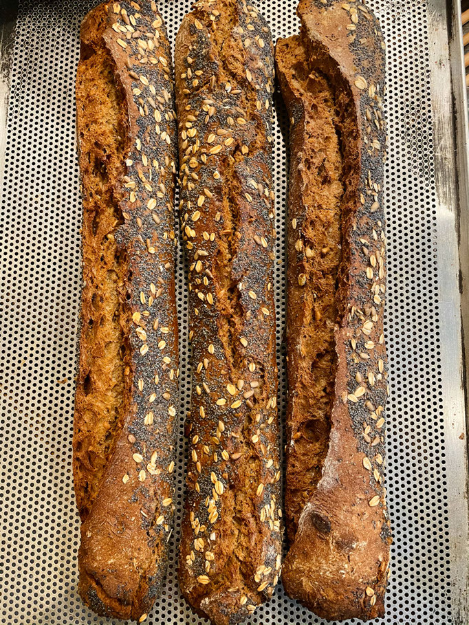Bei den Brötchen finden Sie verschiedenen Klassiker, aber auch besondere Brötchen, wie beispielsweise Haselnuss-Cranberry, leckere Brioches mit Oliven & Parmesan sowie kleine Baguettes, wie unsere rote Beete Stange mit Chiasamen & Mais. Unser beliebtestes Brötchen ist unser Dinkelknoten mit Buchweizen, Kürbiskernen & Cornflakes - unbedingt probieren!